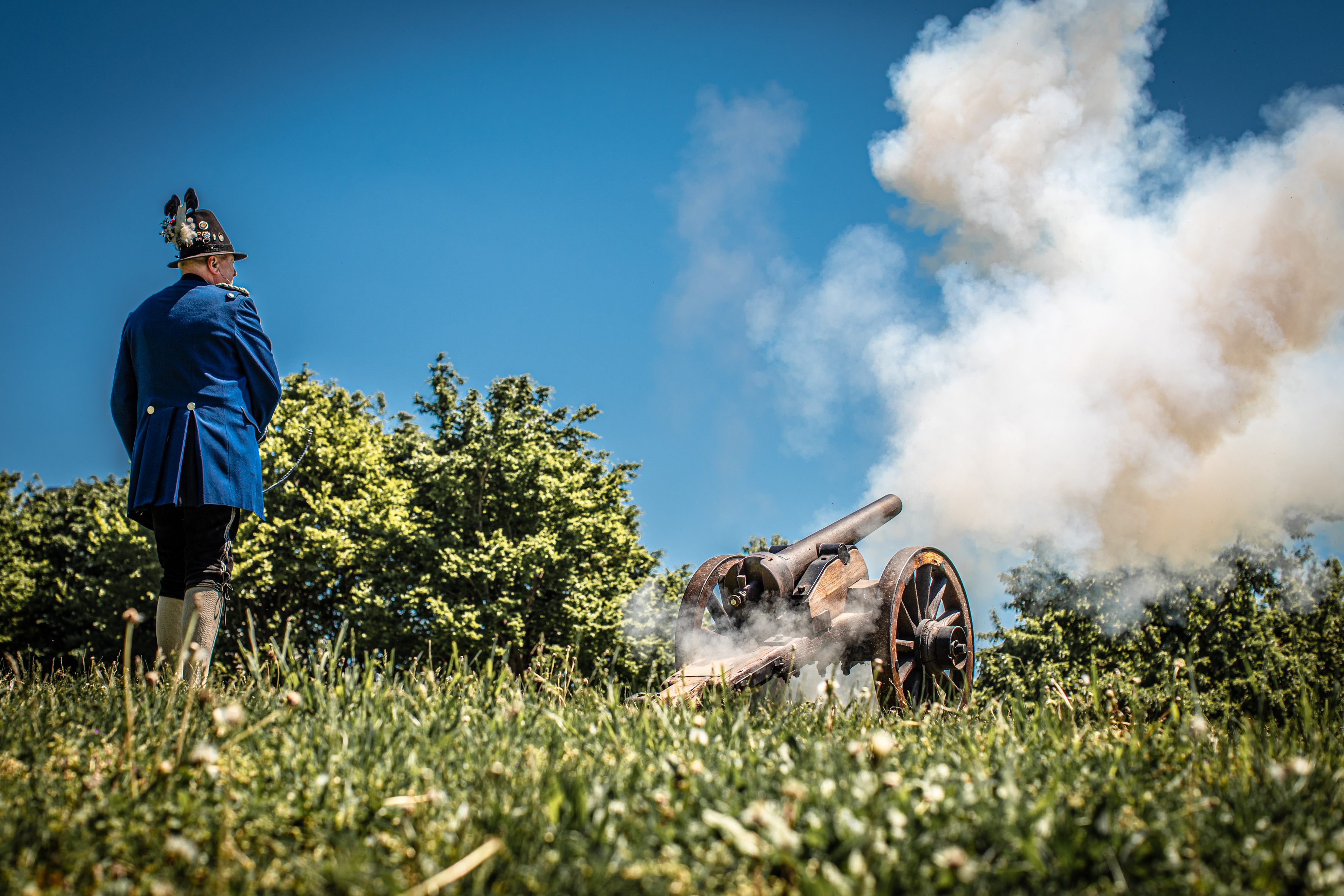Unsere historische Hinterladerkanone ist ein beeindruckendes Stück Traditions- und Militärgeschichte. Hinterlader bedeutet, dass die Kanone von